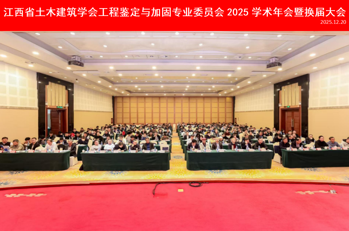 20251220日,由江西省土木建筑学会与南昌大学设计研究院联合主办的“江西省土木建筑学会工程鉴定与加固专业委员会2025学术年会暨换届大会”在南昌召开。来自省内外高校、科研院所、设计施工、检测鉴定等单位的330余位专家学者与行业代表齐聚一堂,围绕工程检测鉴定与加固领域的的技术创新和发展趋势开展深入交流,实现学术研讨与换届工作的圆满落地。